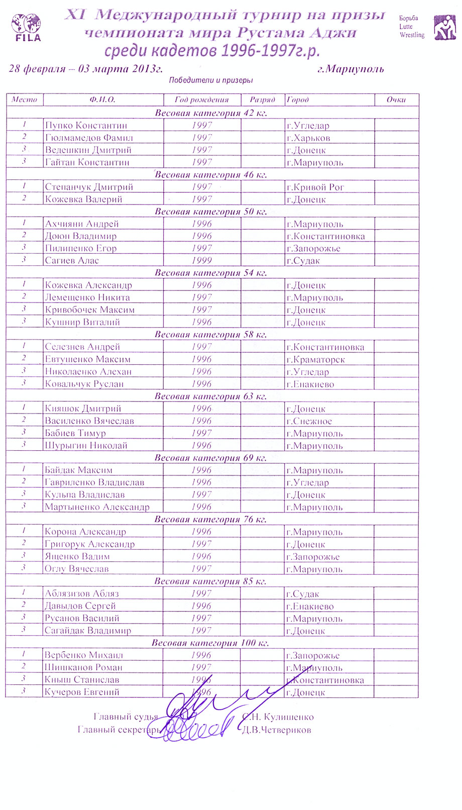 В этом году турнир имел формат Всеукраинского, т.к. одновременно проводился зональный чемпионат Украины среди кадетов 1996-1997г.г., который определял состав участников на украинский чемпионат. Кстати чемпионат Украины среди кадетов пройдёт в г. Мариуполе 10-11 мая 2013г. По общему мнению участников и гостей турнир удался и без представителей других стран. Среди 269 участников борцовского праздника были представители 5 областей Украины, почти 20 городов страны. Необходимо отметить, что турнир проходил в канун 40-летия знаменитого мариупольского борца, которое отмечалось в воскресенье, 3 марта 2013г.