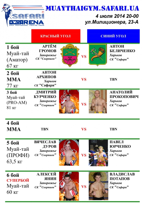 Предварительный список пар. Сафари Арена. 4 июля 2014.