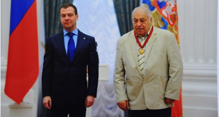 27 июля в Кремле президент России Дмитрий Медведев наградил заслуженного тренера России Дмитрия Миндиашвили орденом “За заслуги перед отечеством III степени”. Своими впечатлениям после церемонии награждения Дмитрий Миндиашвили поделился с Wrestrus.ru - Сейчас у меня только самые прекрасные, возвышенные чувства, - рассказал Дмитрий Миндиашвили. - Сразу хочется работать дальше, продолжать обучать мальчишек борьбе. Вот, вы представляете: столица, кремль, президент, сама аудитория – 50 лучших людей России. Среди них известные актеры Меньшов, Райкин и другие. Быть награжденным в такой компании очень вдохновляет. Это огромное счастье для любого человека и естественно для меня лично. Тренер это и наставник, и учитель, и отец, и ангел хранитель, и когда твой труд оценивается на таком высоком уровне очень приятно. Я хотел бы поблагодарить нашу федерацию, ее президента, Михаила Мамиашвили, вице-президента Георгия Брюсова и всех членов бюро. Благодаря этим людям мое награждение состоялось и огромное им спасибо. Я бы хотел, чтобы моя награда стала для наших тренеров примером, и они не уезжали за границу, а работали в российских залах. Руководство страны таким образом как бы сигнализирует им, что они нужны здесь. Наше правительство правильно понимает, зачем нужны физкультура и спорт. А когда наши спортсмены побеждают в соревнованиях на высоком уровне, это не иначе как укрепление престижа государства. Кроме того, это агитация и пропаганда за здоровый образ жизни Победа борца агитирует миллион детишек в наш вид спорта. И они приходят в зал, чтобы заниматься делом, а времени отвлекаться на вредные привычки и прочее у них просто не остается. Это дело государственной важности, как сказал Дмитрий Медведев. Меня очень тронуло, что Дмитрий Анатольевич оказался человеком добрым и очень доступным. Нет в нем такой наигранности, которая часто бывает у высоких лиц. Награждение проходило в душевной, человеческой обстановке. Я сказал ему пару теплых слов, хотя, признаюсь, немного растерялся. После приема я уехал в Красноярск с добрыми чувствами, и ощущением собственной востребованности в стране. Миндиашвили Дмитрий Георгиевич Родился 04.06.1933, Рустави Грузинской ССР. Окончил Красноярский государственный педагогический институт (1964). Опубликовал более 25 научных работ, в том числе монографии "Мастера большого ковра" (1993), "Энциклопедия приемов вольной борьбы" (1998, соавтор); учебники и учебные пособия "Биопедагогика или спортивная тренировка" (1992, соавтор), "Учебник тренера по борьбе" (1995, соавтор), "Система подготовки борцов международного класса" (1995, соавтор), "Физическое воспитание студенческой молодежи" (1996, соавтор); справочник "Вольная борьба в Красноярском крае" (1998, соавтор). Почетный мастер спорта (1964). Засл. тренер России (1967), СССР (1972), Грузии (1986). В качестве тренера участвовал в ОИ 1972, 1976, 1980, 1988, 1992, 1996, 2000, 2004, 2008. Подготовил 3-хкратного олимпийского чемпиона Бувайсара Сайтиева, двукратного олимпийского чемпиона Ивана Ярыгина. Заместитель директора Института спортивных единоборств им. И. Ярыгина Красноярского государственного педагогического университета, заведующий кафедрой борьбы. Директор Красноярской школы высшего спортивного мастерства ? 4 по вольной борьбе им. Д. Миндиашвили. Почетный гражданин г. Красноярска. Засл. работник физической культуры РСФСР (1983). 