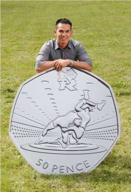 Британский Королевский монетный двор выпустил памятную монету с изображением борцов к Олимпиаде 2012. Дизайнером монеты является Roderick Enriquez.