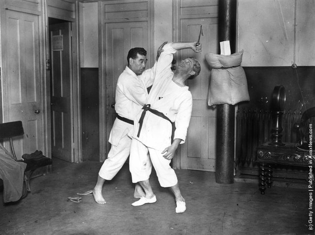 The world champion of Yokio Tani and A. J. Davey show Kine-no-Kata within an exhibition of Japanese art of self-defense. The exhibition is held by Budokwai community. (Photo: Edward G. Malindine/Topical Press Agency/Getty Images)