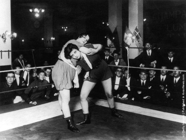 Fight between Argentina Alvares and her Swiss competitor Mrs. Roxana. (Photo: Vidal/Topical Press Agency/Getty Images). Апрель1924.