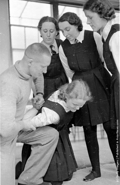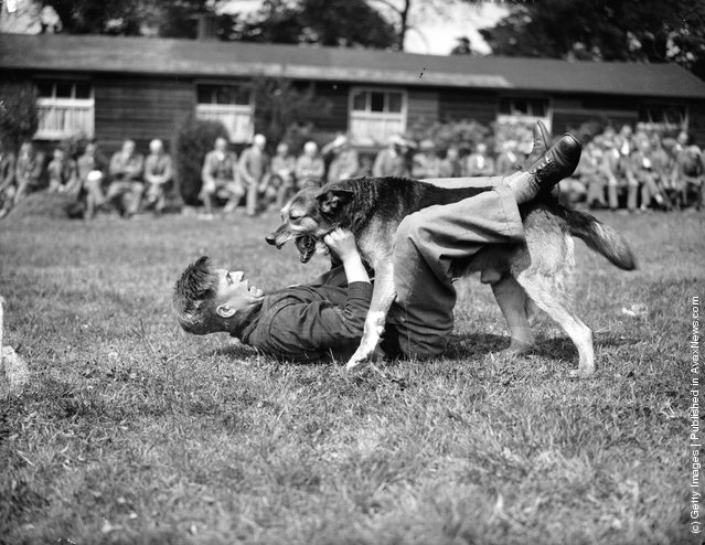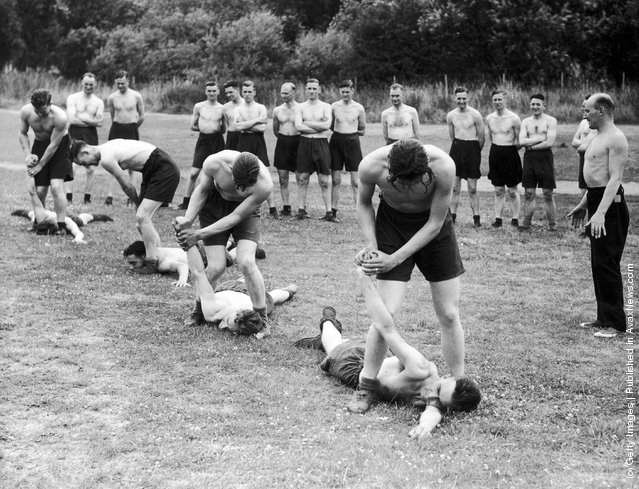 The trainee-police officer watches behind a lesson of self-defense. Peel House. (Photo: Kurt Hutton/Picture Post/Getty Images). July 22, 1939.
