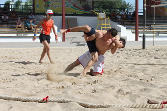 В минувшие выходные в Актау прошли открытые городские соревнования по пляжной борьбе, в которых приняли участие воспитанники спортивных школ области. Хотя, в принципе, сразиться на песчаном татами мог любой желающий подросток, но таких не оказалось. Все участники были разделены по весовым категориям: кадеты – младшая группа до 50 кг, молодежь - до 65, и молодежь - 66 плюс, а также взрослые - от 66 кг и больше. Пляжная борьба для Казахстана довольно-таки новый вид спорта. Соревнования проводятся 3-ий год, да и то, только в Актау, в остальных же регионах страны это направление пока не развито. Хотя уже сейчас по этому виду спорта проводятся и чемпионаты Азии, и чемпионаты мира, а в 2016 году пляжную борьбу планируется ввести в программу олимпийских игр, так же, как пляжные волейбол и футбол. «Главное отличие пляжной борьбы от вольной или греко-римской в том, что здесь спортсмены борются всего до двух баллов. Это очень зрелищный и стремительный вид спорта. Часто схватки длятся меньше минуты», - рассказал Александр Мухалев, старший тренер по пляжной борьбе. «В Казахстане пляжная борьба только развивается, в России этот вид спорта уже давно достиг должного уровня. Многие ребята, которые не реализовали себя в таких видах спорта, как вольная, греко-римская борьба, дзюдо, будут востребованы в пляжной борьбе», - отметил Канат Озганбаев, директор центра подготовки олимпийского резерва Мангистауской области.